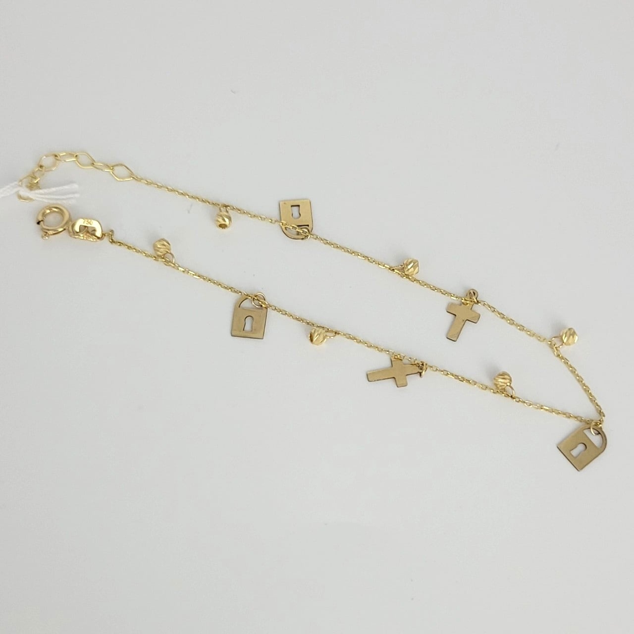 K18イエローゴールド製の鍵穴と十字架をモチーフにしたブレスレットです。ユニークでシンボリックなデザインが、あなたの手首に個性とエレガンスをもたらします。