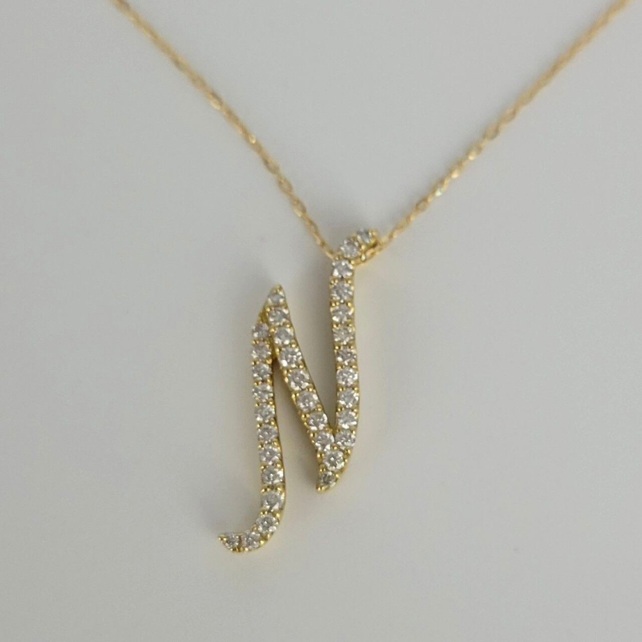 0.2カラットの輝く天然ダイヤモンドをあしらった、K18イエローゴールド製N型ネックレスです。エレガントで個性的なデザインが、あなたのデコルテに上品で華やかな輝きをもたらします。