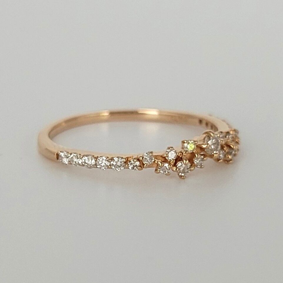 0.2カラットの輝くダイヤモンドが魅力の、K18ピンクゴールド製リングです。繊細で美しいデザインが、あなたの手元に上品な輝きを添えます。